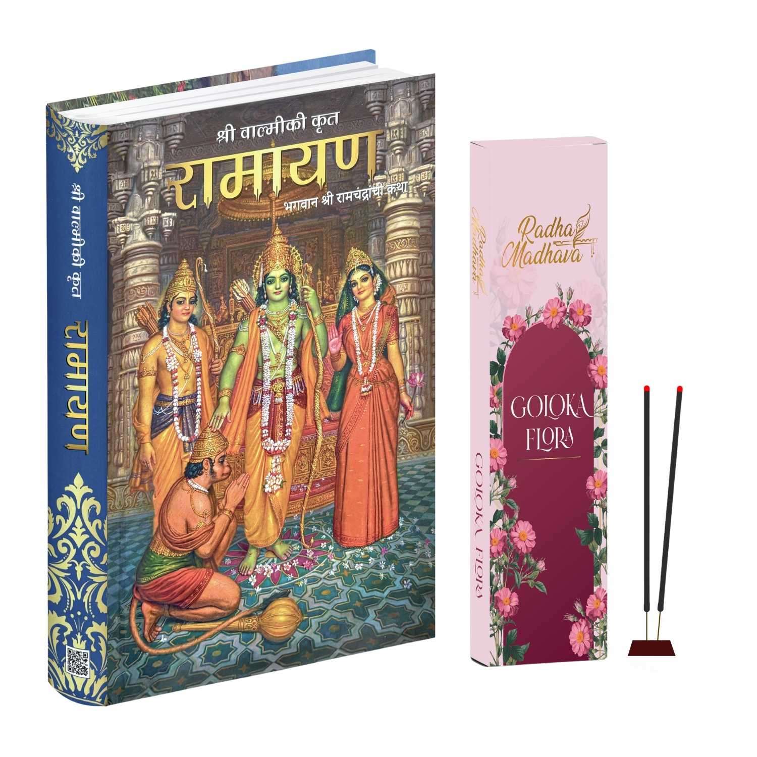 Valmiki Ramayana Marathi Book (Hardcover),Ramayan Katha Granth with Goloka Flora Agarbatti