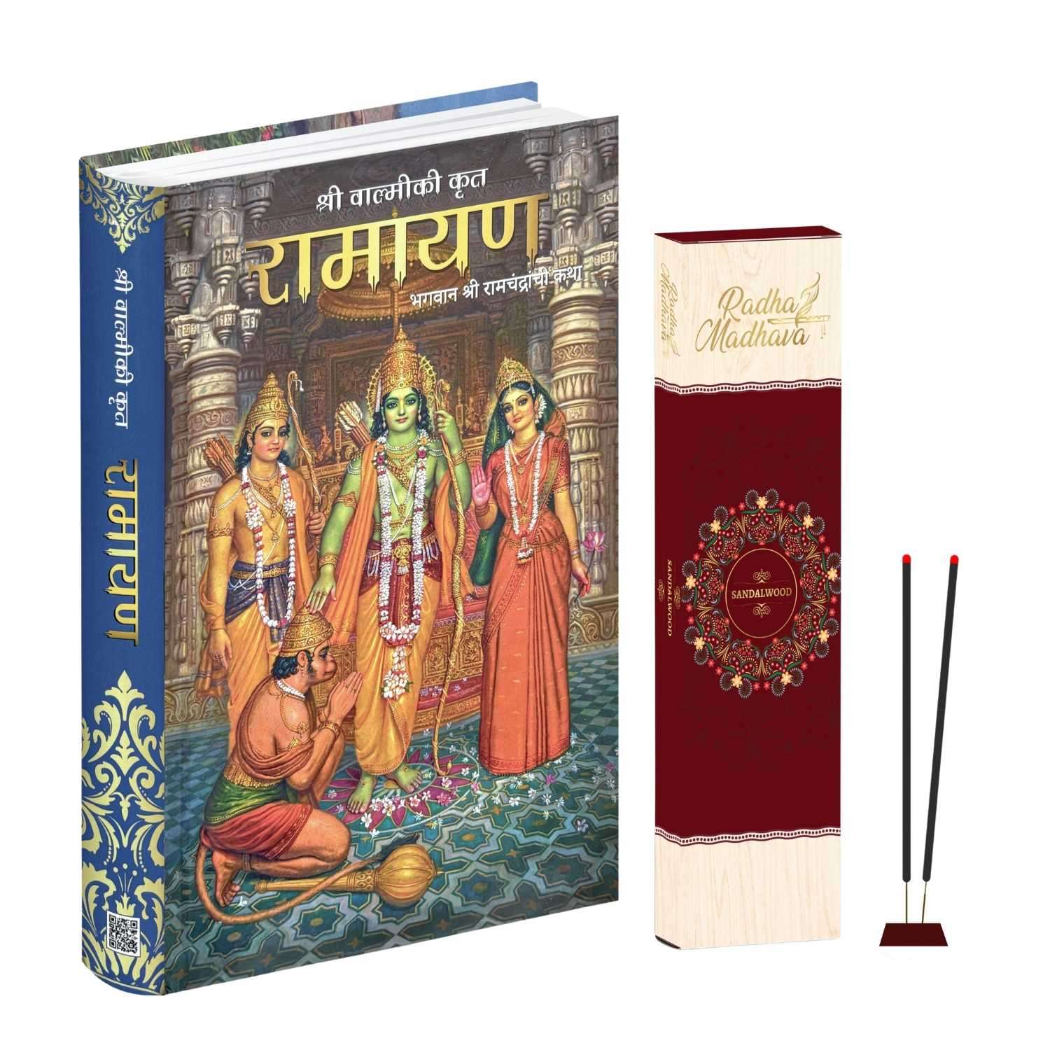 Valmiki Ramayana Marathi Book (Hardcover),Ramayan Katha Granth with Premium Sandelwood Agarbatti