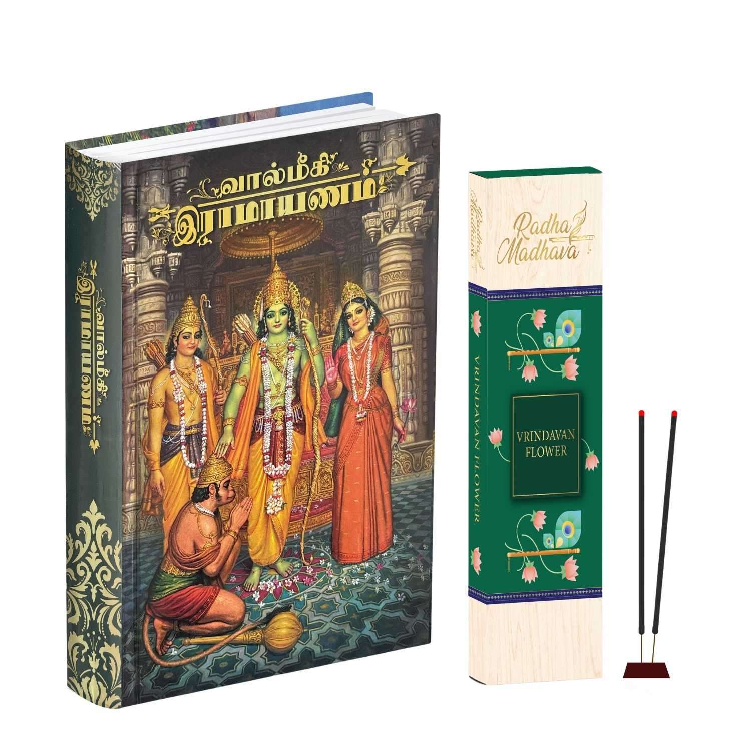 Valmiki Ramayana Tamil Book (Hardcover),Bhagwan Shri Ram Katha Granth with Vrindavan Flower Agarbatti