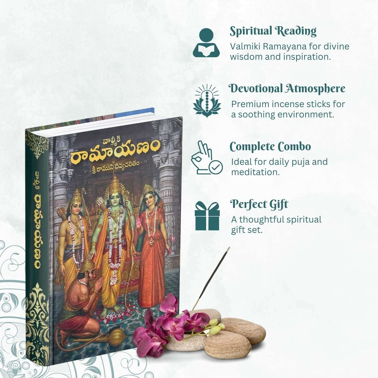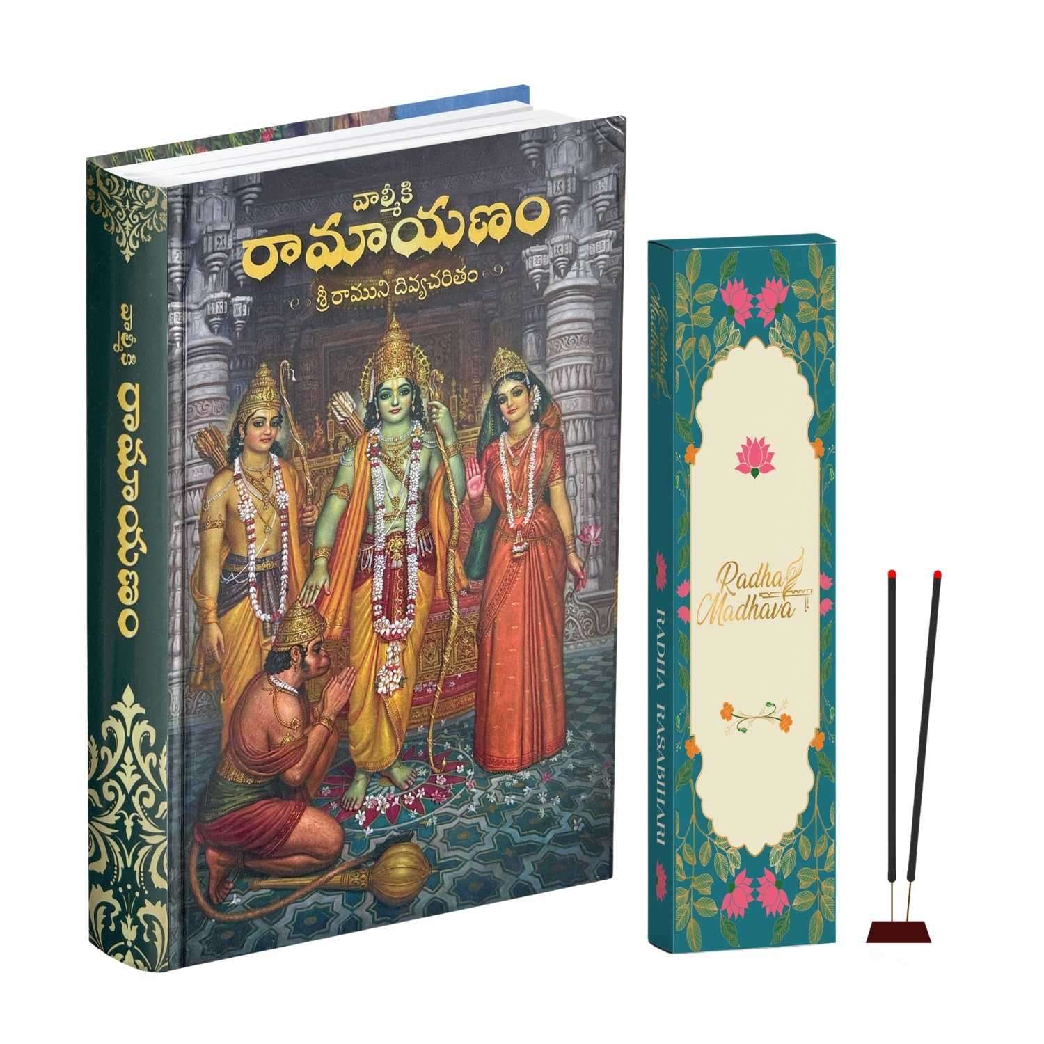Valmiki Ramayana Telugu Book (Hardcover),Bhagwan Shri Ram Katha Granth with Radha Rasbihari Agarbatti